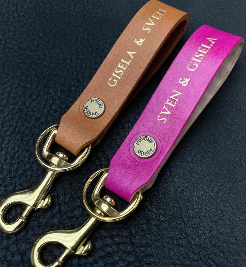 Wir bieten dir eine Auswahl von 5 verschiedenen Lederfarben: schwarz, dunkelbraun, cognac, natur und pink.Kann ich mehrere Motive in einer Serie prägen lassen?