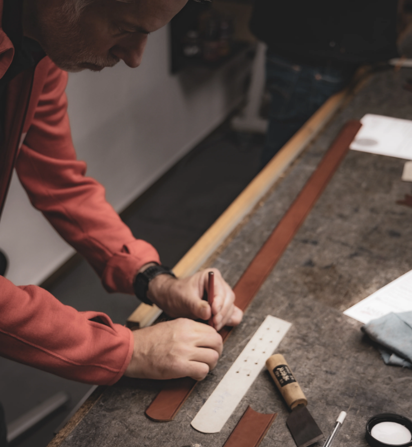 Unserer Erfahrung nach, ist der Gürtel am Besten für einen Workshop geeignet. Wir möchten euch einen echten Einblick in unser Handwerk geben - vom Zuschnitt bis zur Prägung. Am Ende nehmt ihr nicht nur neue Erfahrungen, sondern auch euren maßgefertigten Gürtel und ein gutes Gefühl mit nach Hause.